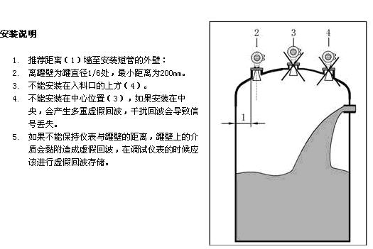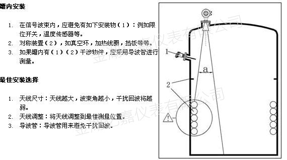 1雷達(dá)天線不可向罐壁傾斜。